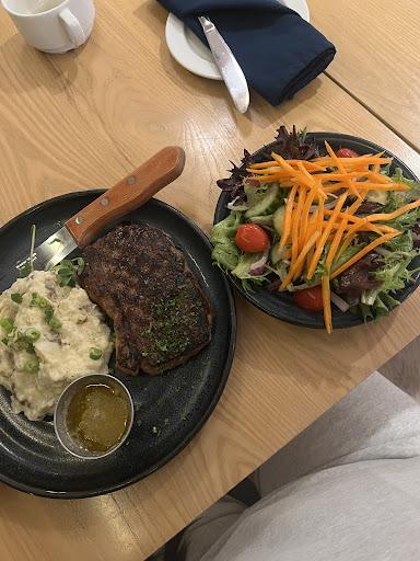 I ordered the 10oz steak with a side salad and mash. The portion size was great! Sometimes you go to a steakhouse and the food is scant but the price is large. Here, I felt like it was appropriately priced and generously portioned! So it actually is a great bang for your buck.