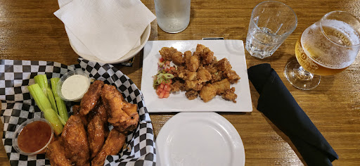 I ordered their wings and calamari. While both dishes are extreme favorites of mine, they're usually hit or miss at so many establishments around our little city. Well, the order arrived with extra napkins and side plates for the mess I'm about to get myself into with the wings coated generously with their buffalo sauce.