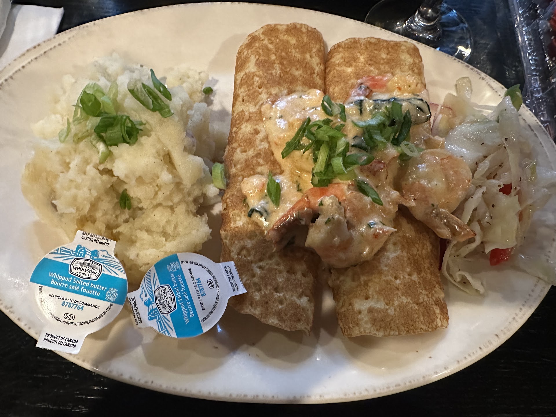 Made reservations for 6 people - table was set up & ready when we got there. One downside was, I booked here because we checked the menu online & my sister wanted the seafood linguine that was advertised for $20. She was very disappointed when it was No longer on the menu! She settled for steak. Others ordered pan-fried haddock, fish & chips, chowder but I think I ordered the best meal of all! I had the lobster & shrimp crepes ⌠Mmmm .. Delicious!!! Waitress was very friendly. There was entertainment but it started at 8pm & we left before that. Another downside, we brought in a birthday cake for someone in our party (purchased at Sobeys). We asked for a knife to cut it & were told because of Heath relations the waitress wasnât sure if we could serve it to ourselves. She checked & a guy came out & said something similar about not being able to because of health inspector. Then as long as we could prove it was bought somewhere - then all of a sudden it would be ok for us to enjoy it but there would be a $2 / person plate charge. I guess the health inspector would be ok with us eating our cake as long as it was on the restaurants plate! We took our cake back to our hotel & enjoyed it...