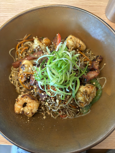 Read moreArrived here about 5pm on a sunny Saturday in September. The place was mostly empty, so we were asked where we would like to sit and I pointed to a table at the front that had a neat looking seat (looked like a tree stump, painted red, sturdier than the other regular chairs). The place is heavily staffed and they are very attentive, coming constantly to make sure things are ok and if you want more. My friend and I decided to share several menu items. The Tapioca Shrimp Chips with XO Caramel Kewpie Dip ($8) were good, rice cake texture, in two shapes & colors, very light. The Twisted Pods (edamame with peanuts & Szechuan pepper sauce, $7) were very good and savory. Small serving but that's ok. The Egg Rolls (cabbage, bamboo shoots, shiitake mushrooms, red currant dipping sauce, three pieces for $14) were excellent. Look like your everyday egg roll but just a lot better, slightly greasy, very crunchy. The Singpore Rice Vermicelli noodles (shrimp, bbq pork, egg curry, $21) are definitely a main for one person, good flavor, the noodles on the tad dry like which I prefer). I'd...