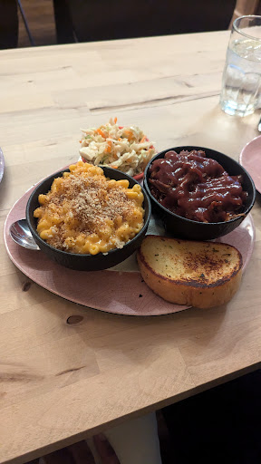 In terms of food, I ordered the 1lb Brisket, Mac & Cheese on the side with a Shirley Temple as a drink(MockTail). It also came with a slice of Garlic bread and coleslaw. I wasn't a fan of the brisket, I think it's missing something and I don't think the BBQ sauce goes good with it. The beef itself is very plain. The coleslaw was a little more enjoyable, but it isn't great.