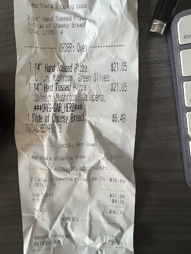 Ā Ā Ā Read moreWe placed our order at 10:25pm. When we got to the location we had to wait for the dessert as the employee had dropped the cake on the floor. After we paid, we realized that they had made the wrong order. Since the store was closing at 11pm and they had no time left I asked for the money back for the pizza and the dips. The employee gave me my money back just for the pizza. When I calculated the total I realized that she owed me more money. I went back and asked her to give me the total refund. After driving to this location, wasting my gas, getting the wrong order, not getting the correct refund and having left with no dinner this restaurant provided pathetic customer service and not apologized even ones for their series of mistakes. They didn't bother at all to fix...