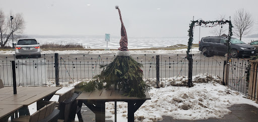 Stopped here for lunch on Sunday July 15th. The location is great, nice view of the lake, however..... the service on this particular day was nothing less than awful.. the patio was average busy and split in 2 sections, one large and one small consisting of about 6 tables.. The server handling the large section was doing great, very diligent, service looked quick and efficient.. we however were unlucky enough to be sitting in the other server's section.. She was completely obliviois to our presence for a solid 20 minutes.. others in her section (Yes all 5 others) also seemed to be complaining of poor service.. we finally flagged down the other server as ours was no where to be seen, we'd been there for 20 minutes and didn't even have a menu or water ... We finally received our menus, and water, all of us quickly decided what to order.. our server walked past and asked of we were ready to order to which we replied "yes"... (this was now 30 minutes after being seated) and then she proceeded to clear tables and seat more people rather than get our food started.. all the while smiling very casually , taking her time, and completely oblivious to the fact that we were now 40 minutes in and hadn't ordered yet. I should point out that this was not a busy time of day.. 2:30 in the afternoon... Finally ordered , food was good, although we could have been served anything at that point and we'd have eaten it.. fries looked good but were stale as if they'd been sitting in a warmer for a long time.. obviously they are not made to order.. As others point out its over priced as well .. $95 For lunch for 5.. and nothing special was ordered, we all had water and no drinks, mostly because it was never offered and the water that sat empty the entire meal never got filled... on a hot and humid day. . Will...