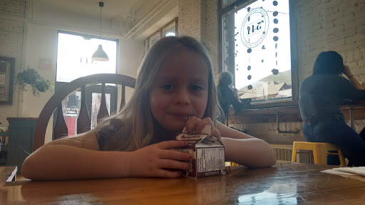 Large sunny windows fill the space with lots of light. Background music is low enough to allow easy conversations.