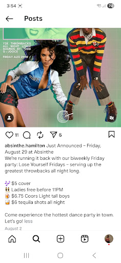 Read moreWent to Absinthe for âMotown Nightâ â heard more Kendrick than Marvin. Pretty sure the DJ was just playing his âsongs I like while cleaning my apartmentâ playlist.