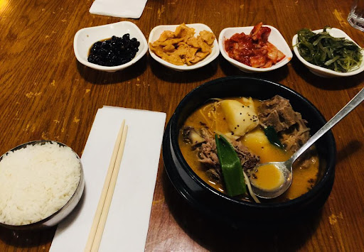 Read moreUnfortunately, my visit here will be the last. I have dined here with friends a handful of times because they really like variety and the taste of food here, but it's just not for me. It was just very uncomfortable today as it was very hot and humid and they didn't turn on the air conditioning until we were all about to leave. It was pretty busy on our visit today but I feel like, service is slow and sub-par. I ordered the pork bone soup and seafood pancake. The pork bone soup was alright but the seafood pancake was more like an onion pancake. There was about 2 squid pieces and 2 shrimps and it was mostly spring onions - definitely not worth $13.99 at all. The servers were polite, but it just took them such a long time to take our order (like usual) and strange enough, and no refills or check in to see how we were doing. On top of that, my friends and I had to split the complimentary apps. They also ran out of ice and once again overcharged us on our bill, despite the fact that we always pay in cash and they've claimed they've given us 5% off. It's just unacceptable that every time I calculated and confront them, I always get a lower amount. The excuse I sometimes get is, "oh we forgot to change the price of this item", "oh it''s actually extra to get more...