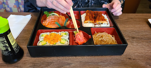 After the order what we got wasthe udon nabe with tempura on the side, bulgolgi roll and bento #4 which had unagi on rice, California roll, glass noodles and salmon sashimi.