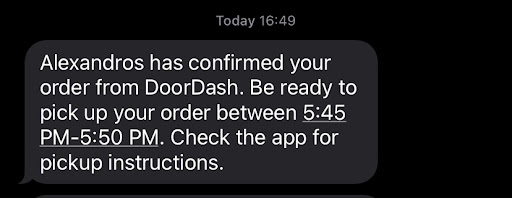 I would just like to thank Alexandros Restaurant on Upper James for ruining our dinner tonight. I placed an order at 4:49pm through Door Dash, as I have done many times, for pick up between 5:35pm and 5:45pm. Not delivery, but pick up, so that they wouldn't have to pay any service fees.