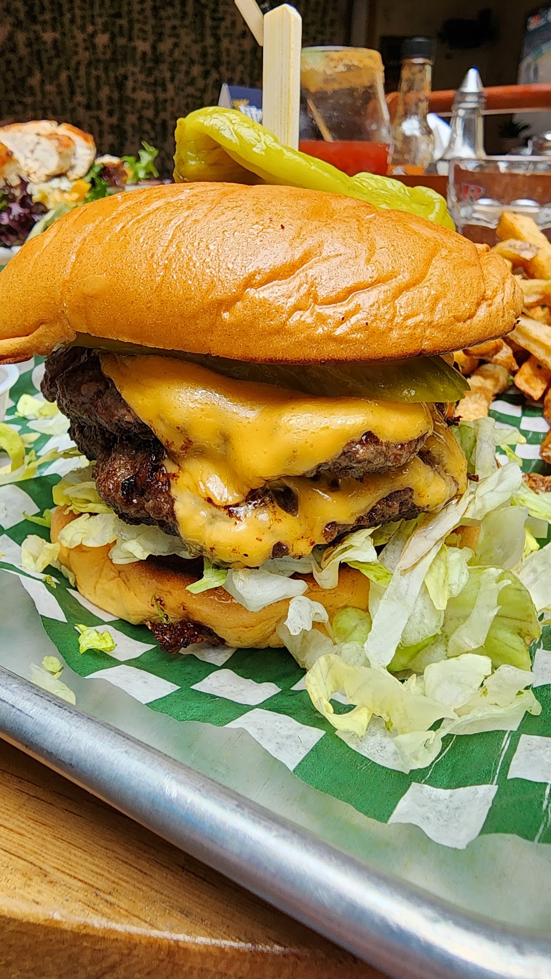 Food & Pricing Double Smash Burger with Waffle Fries – The burger was flavorful, with fresh condiments (7/10), while the waffle fries were crisp and perfectly executed (10/10). Price: $25.00 Thursday Special: Detroit-Style Pizza & Wings – The pizza, approximately 10x10 inches (small to be honest) was doughy (as expected for Detroit-style) but slightly underwhelming in flavour (6/10). The wings, while well-seasoned and properly cooked, appeared to be fewer than a full pound (7/10). Price: $35.00 Drinks – One draft beer and two Pepsis.