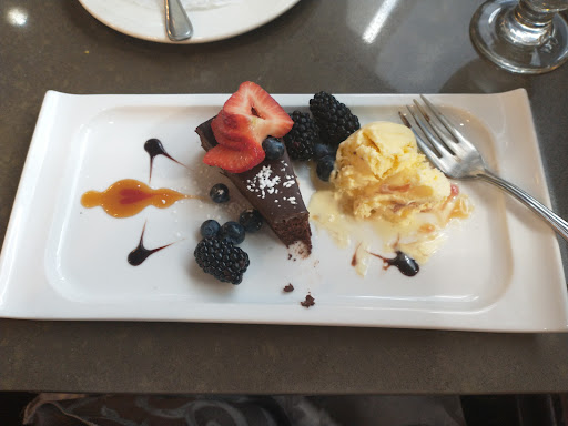 Exceptional experience. My reservation for two changed and I still went and very glad that I did. I ordered their Gluten Free Flourless Chocolate Torte. Tortes for those who don't know are made with a higher ratio of eggs and butter and as such a much smaller portion is usually the way to go. As a chocolate lover this was a fantasy come true. The density/texture balanced between fudge and a brownie was superb. The depth of chocolate taste was deep and luxurious. The sugar content was a perfect nudge down allowing for the chocolate flavour to reign. The presentation was lovely and the berries were carefully selected for peak ripeness and taste. They contrasted beautifully with the torte. I ordered a single scoop of quality French vanilla icecream for $1.50 additional. This allowed for a palette cleanser effect of sorts in between bites. I savoured this experience. My server was pleasant and not overly "nice,' and this was welcome and refreshing. For a Tuesday at 5 this restaurant had only two patrons, which was fine by me. My bill came to $10.74 and left enough room for a healthy tip. The server told me that the menu will be changing in a couple of weeks. I pray that when I return in about 4 weeks that this glorious dessert will...