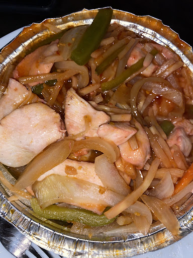 I went here with my friend and son and decided to sit and eat. There is only 1 table a large round one in the middle of the room. The place is not for dine in. They have all the other tables and chairs stacked on the side with cases of soda and water piled on them. The atmosphere was not welcoming normally I wouldnât even eat in a place that looked the way that it did, but I was told the food was good so I decided to give it a chance. The older woman there pretty much hovered over us watching us eat. When I asked for napkins, straws, extra cutlery she just tossed them on the table unprotected. She never wiped the table down or anything. She just continued to stare at us as if we had intentions to steal something. When all we wanted to do was eat in peace. Halfway through my meal I was chewing on rice and bit into something that felt like a fingernail in my mouth to be honest, I was mortified. When I spit it out, it ended up being a wire of some sort. I showed the lady that was hovering over us and she just looked at me and said oh. It didnât seem like she was going to do anything about it at first. Moments later, she said I donât pay for it. I was never paying for it. I stopped eating immediately and gave her the food to throw away. Had this been a takeout experience I wouldâve wasted my money. I do not recommend this place. They are not clean. They do not have good customer service. They do not handle food properly. If youâre OK with eating food out of a dirty kitchen, then continue eating here but if you have any respect for your health and safety, I suggest you go somewhere else. I wish I took a photo before she took the food from me. Worst...