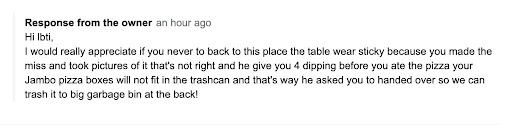 [Response to owner]