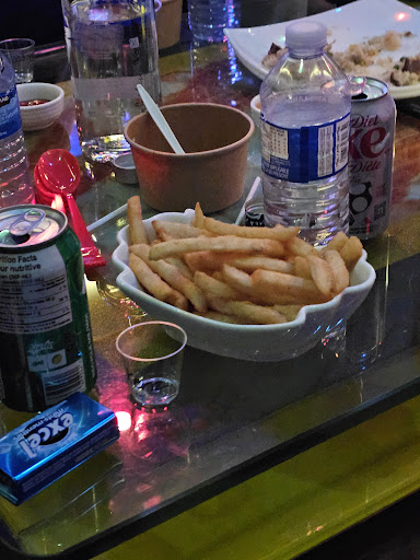 The only bad problem was the food prices. If they fix that, we would definitely go back! We got the small plate of French fries shown on the picture and it was 18 dollars. The plate of french fries could feed one person or maybe 2, we were expecting a platter for 18$ (24 with tax). I don't think the prices when you book a room for the food are the same price as the takeout food. The drink shown in the picture was 23 dollars, which means for 2 drinks paid ontop of the room prices it's 46 dollars for 2 mixed drinks. Our party paid 130 dollars for 12 beers. This is all ontop of renting the room prices. It included some food allowances with the room price for alcohol and food so we got 2 bottles of liq and 2 plates of rice for 400. Plus the room rental from 7pm til 2 am. Was 300. The price for the room for the entire night was great! No complaints there. Its everything else we ordered (mixed drinks, french fries, beer) that was on top.