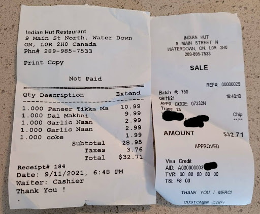 Read moreI've eaten here a few times now, and ordered out about twice, and the food has always been delicious. Every dish is perfectly spiced, the meat dishes have large, succulent cuts (unlike other places, you don't need to dig through the sauce to find the good stuff). The veggie dishes and paneer are fresh and the sauces are so full of flavour that you can eat them on their own (or try their fresh naan, which hits that sweet spot between chewy and fluffy), with savoury kormas, vindaloos and various curies. We usually get a medium spice, which has a nice kick to it--mouth watering but not blistering--but if you are sensitive to spice you might want to try mild. The portions are generous and heat up just fine (I'm actually eating leftovers as I type this).
