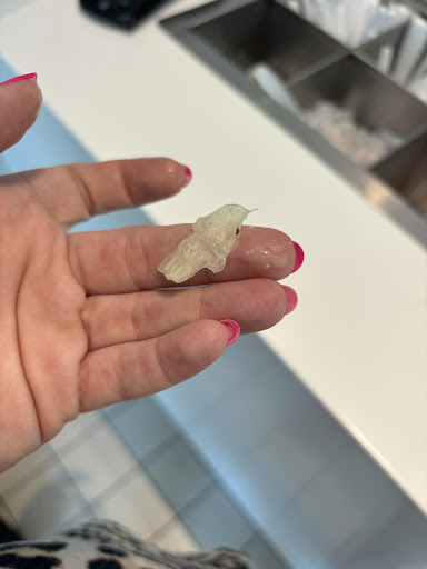 I ate one potato and noticed there was a bug in my salad; I had to argue to get a refund. Was told the fly/gnat was oregano from the olives, when there were no olives in my salad. The elderly woman who worked in the back picked up the bug with her tongs and squished it, telling me it was not a bug. You can see there is a wing in the photo.