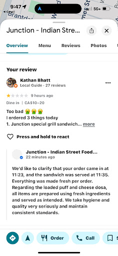 .............. Calling a factual review āfakeā doesnāt make it disappear. You were slow, rude, and unprepared ā thatās the reality. Instead of attacking customers, maybe fix the prep times and staff behavior. Honest feedback is meant to improve your business, not to insult people who point out your mistakes