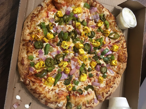 So I said ok. I got honey hot wings and butter chicken sauce pizza with pep, butter chicken and extra cheese, she told me I would have to pay extra for the extra toppings.