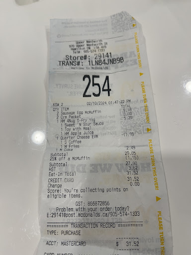 Read moreThis is my first time giving a negative review after living over 25 years in Canada (Due several errors by staffs of this location). At least 50% of the time, our orders are incorrect. Staffs do not focus on customerâs order(s), the way they should. Listening is extremely important for people who work in customer service. Today my wife went to drive thru with my kids, asked for egg and cheese sandwich (no meat). Once the order was ready, my wife asked the staff again âthere is no meat, rightâ. She confirmed yes, â100% there is no meatâ. My wife didnât open the bag (to double check), because we had a large order. Plus she had waited over 15 minutes to get the egg sandwich. So she assumed everything must be good, because the staff verbally confirmed TWICE. Surely my wife comes home, we are ready for our dinner/open the bags and Kabooom, the meat is mixed with egg. My little daughter kept insisting that she wants her egg sandwich. We called the location, advised about the error in our order and the shift manager asked us to stop by and get another sandwich. I couldnât stop my daughter crying, so I drove back (15 minutes drive) and arrived at the location and talked to this humble gentleman at the front (Possibly Jamaican Canadian). He was just a cashier I think and I asked for his manager. He went to the back to ask for manager to speak with me. Couple other girls told the gentleman âtell the customer, whatâs your problem, what you gonna doâ. I kept my cool and spoke with manager and she got one of her staffs to make new egg and cheese sandwiches (double cheese). After 10 minutes, the order was ready and manager apologized and provided me with the sandwiches. I opened the bag to double check, it was only one cheese and we clearly talked about double cheese. She apologized again and had to add cheese again.