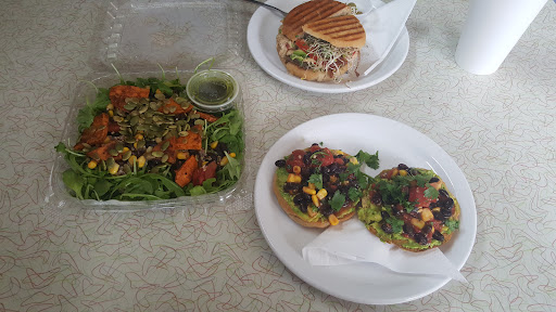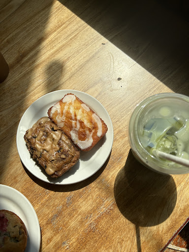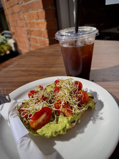 personal menu favourites: vegan caesar, iced matcha latte - with almond milk, banana bread with espresso icing, avocado toast, lemon loaf, iced peach green tea - half sweet, and their cold brew is buss.