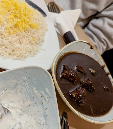 I will say this. I feel with Persian food, places like this might not know how to market Persian food well. Because certain Persian dishes would go with a whole bunch of small dishes. For example, fasenjoon, it's too rich on its own, when you just give a giant plate of rice + fasenjoon It feels like you would need to get it with a whole bunch of other dishes maybe?. This is just my opinion when it comes to Persian food in Canada. The Lamb shank was okay, I do wish they put barberries in the rice. Other than that again, it's just a piece of lamb with rice. You need to order or put things with it like veggies or something else authentic on the side. This is my only criticism with Persian food in places like this. It's good to come here and share with a bunch of people different things since some of the authentic solo dishes kinda Don't make sense to eat on your own.
