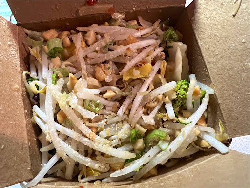 The food is a 3/5. The steak tenderloin is definitely not tenderloin. It’s very tough and overcooked. If in fact it’s tenderloin then they overcooked it substantially. I suggest sticking to chicken. The amount of vegetables is small as well. Your noodle box will be full of noodles but not much else. It’s value is not there as noodles are cheap and the other items are so few. Protein is rationed quite heavily. Regardless it does taste good. The coconut shrimp is good but a pass.
