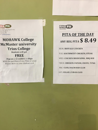 Read moreI rarely go to Pita Pit but decided to stop by for a grilled caesar wrap. The cashier notified me that they had daily specials and pointed me to the promos on the wall. At which point I saw the other sign stating that if you ordered a regular pita and were a student from either school, you would be eligible to get a can of pop, bag of chips or cookies. I asked about the student promo to which the cashier notified me that I wouldn’t be able to apply both but none of the pages stated that. The owner overheard our conversation and immediately he told me that they would update the promos but he was happy to rectify the situation. Aside from this misunderstanding, the staff was super helpful, the wrap was delicious and they do not skimp on veggies or meat. Excellent customer service....