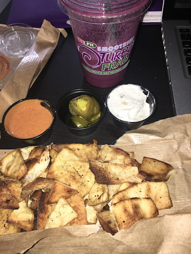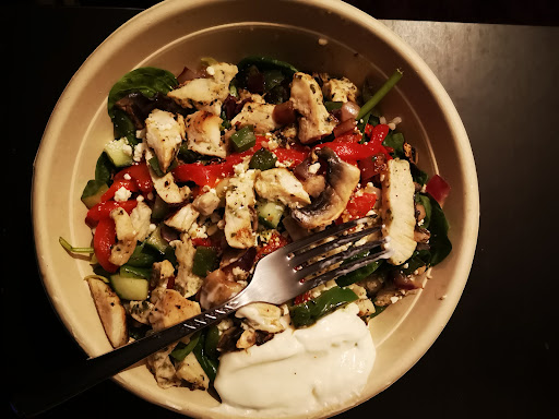Read moreGot the chicken souvlaki rice bowl (regular size)with tziki and Greek sauce and a kiddie sized chocolate banana smoothie. My partner had the buffalo chicken wrap (regular). Total came to around $32.