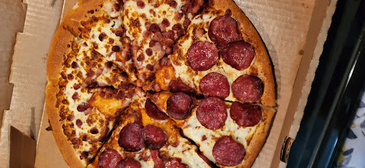Read moreI was not impressed with my pizza, as you can see in the picture there is missing toppings in the middle of the pizza, I don't even know how this would happen. This is not the first time something like this happened. We got 2 pizzas, the second one was better but it still was missing some in the middle of one slice but at least it wasn't the entire center like the first one. Also the staff should inform clients of promotions that would save them money. I didn't notice until after I paid and was flipping the signs on the counter that I saw we could have saved money buying the 2 pizzas yet we paid full price ( the little sign was facing the employee at the time of ordering). The staff were friendly but the quality of pizza is disappointing. I had not been back for a while because of the last time something like this happened but I figured I would give it another chance but nothing has changed except...