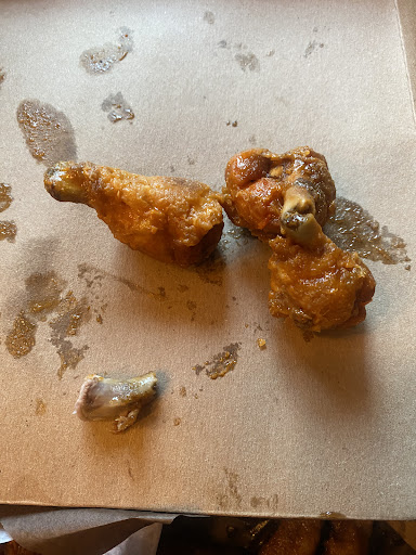 We ordered a large combo that came with probably four pounds of wings or so we had two pounds done in there honey and two pounds done in the medium. The order also came with a big box of fries and a big container of coleslaw.