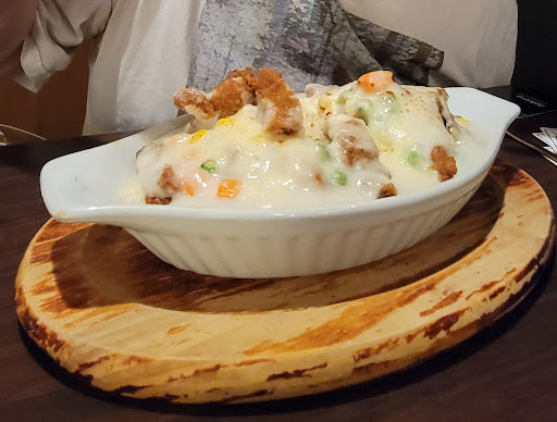 Secondly, my dad ordered the cheesy baked rice, and it looked nothing like the picture on the menu. Instead of having appetizing broiled cheese on top, there was a white cream sauce covering it. There was a bit of mozzarella underneath that, but for twenty dollars, he didn't deem it worth the price.