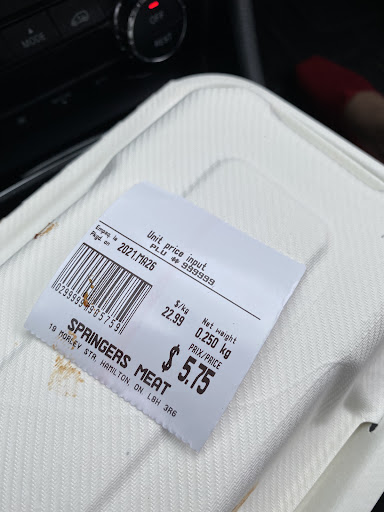 Read moreI love stopping here on the way into work to pick up lunch or deli items to pack lunches. They have a complete delivery counter with meats and cheeses as well as a fresh meat counter (steaks, chops etc). There is also a section with vac packed meats and cheeses. The best part of coming here is their lunch counter. Take out only! They have daily snadwich specials, soups, stews, pizza. Every morning they cook up a breakfast special...egg sandwiches, bacon, baked french toast, breakfast pizza!! Prices are very reasonable and portions are very large. Sandwiches are huge!!! They also carry breads, crackers and snacks. If you go around lunch, I usually wait until around 1pm...it can get quite busy with contractors buying lunch for their crews. Springers is a hidden Hamilton gem on...
