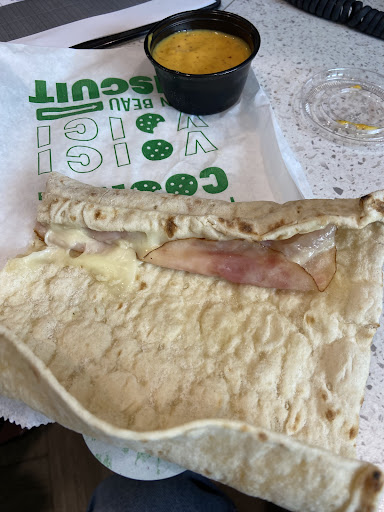 Tonight 2023/10/29 around 7 PM I tried to buy a kids menu - a subway sandwich price 5.55+tax. The lady took a foot bread (regular), she cut off in the half and after she cut off the corner (don't know why she took it off and put in the garbage that part, people are paying that parts as well). She added cheder cheese, 2 slice of tomato, 2 leaves of spinach, 2 slice of cucumber, and a pitch of cheese. The pitch of cheese was considered extra cheese (like a small tea spoon). So NO ham, NO bacon, nothing else, as should be into a regular sandwich for same price, i repeat my self 5.55+tax. My son didn't want and my wife asked it's okay if she can add extra cheese replacing the ham, or the bacon. So the price of the small sandwich (less of the 6 inch because the lady put into the garbage the corner of the bread) became surprising, after tax $9.88 from $6.27. Magic. So just beware with the extra cheese here cost a lot :)). I asked why is $9.88 after tax, should be 5.55+ tax ($6.27). She said for the extra cheese. So ladies and gens I can not recommend this SUBWAY place. Of course we decided to not buy anything at the end... and guys its not about the money here,... its about a principle. The way how some people are trying to make money. You can not post a price and demanding a different price at the end - its not good for...