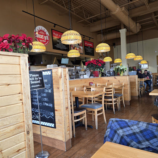 Fast turn-around time, despite it being quite busy. My husband and I used to go here when we wanted to have breakfast out but didn't have a lot of time. The food has gone a bit downhill lately, (the last few visits were sub-par) I also find they are sticklers with a few ridiculous things. They have specific menu items that are marked as "no substitutions" which is totally fine. I tried to order one of their pre-made veggie omelettes a few weeks ago. I wanted to switch tomato for mushroom but the waitress wouldn't let me. That one is not marked "no substitutions" so I wasn't sure why I couldn't. She told me I would have to order a make your own omelette. A make your own omelette with the same amount of veggies as the pre-made veggie omelette is over $3.00 more! The place wasn't busy, and I wasn't asking for something that cost more money, so I wasn't sure why they couldn't swap one small thing for another. She seemed kind of rude about it which kind of ticked me off as I used to go here almost every Sunday.