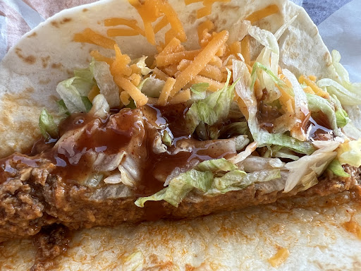 Regarding Taco Bell food, this one is on par with all others Ive been to. I am absolutely grossed out by the white icky monstrosity Taco Bell mistakenly calls "sour cream" because it's powdery and tastes weird.