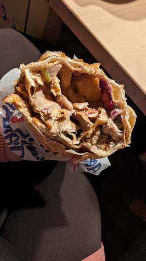 Since they are offering different flavors with their shawarma, I chose the butter chicken version. However, it was a huge mistake. And I will not blame myself for that, but the restaurant who thought it would be a good choice to have on the menu. Normally Shawarma is dry compared to butter chicken, that is why shawarma goes well in the wrap, with addition of some tahini sauce and veggies. However, butter chicken shawarma was not shawarma, and it was not the true version of butter chicken. When butter chicken was wrapped into the bread, I cannot say I was able to enjoy it as it was it was messy, mashy, chewy while the wrap was made with wide open ends letting everything to drop from the wrap. It was my fault for giving a try to a shawarma at a 'franchise' versus going to a place where the shawarma is made by the chefs / masters themselves. The girls at the store did their job well, but the fancy packaging was not enough for enjoying my shawarma. I am not coming...