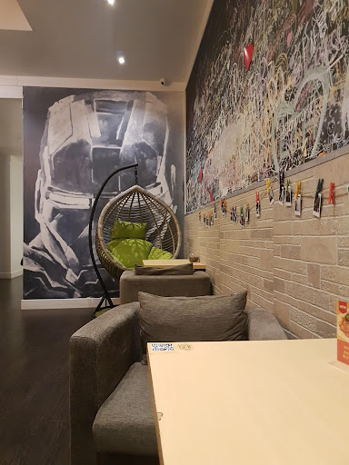 Read moreExtremely calm and quiet, the teas are very tasty with a wide variety to choose from. The atmosphere seems like you're in a calm/clean playstation AR videogame hub (in a good way; I'm not a fan of the Iron Man mural though, it looks good, but iron man is a strange choice. I'd rather see something that has to do with a nice tea internet cafe, like a LoL/Dota/PCvideogame). I'd say this place is a 4.4, kinda pricey, but MOST DEFINITELY worth it. I'm going to go back again and again and again and again and etc. Theres business meeting rooms and it's very sophisticated/casual. The name suits this...