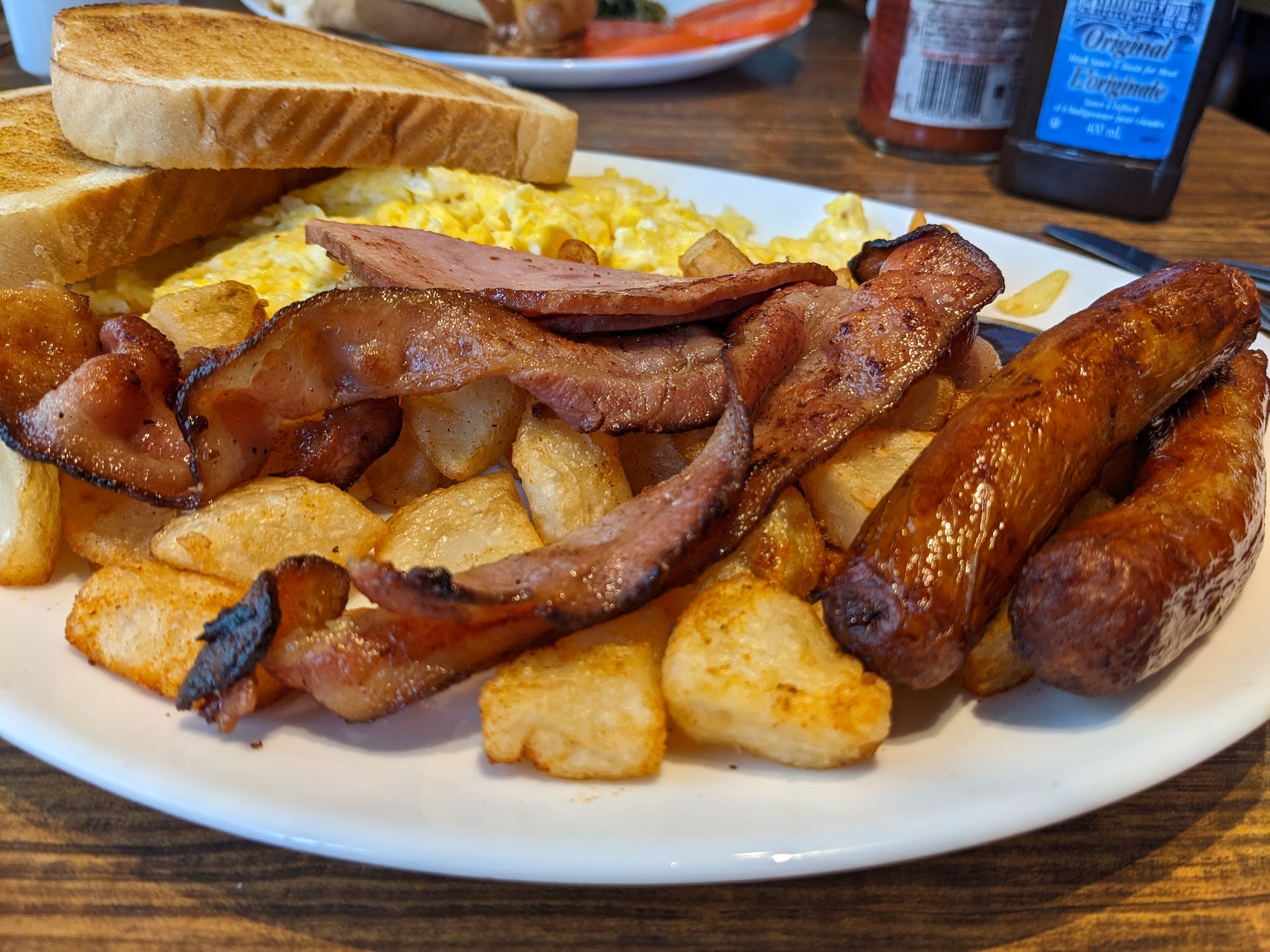 Read moreUpdate: Oct 20th 2024 We went for lunch at about 1230 and the location was very busy as expected but we got seated immediately. Our waitress got to us when she could but it took a while as they were clearly understaffed. Our waitress was extremely pleasant and friendly. My wife ordered an omelette and asked to add bacon to it. As she ate it she noticed no bacon in it. The waitress was so busy my wife finished her meal before we could show her. We said it's ok now but can we make sure we don't get charged for the bacon. She said there is no manager on site to take it off the bill so she'll pay us the $2 out of her tips. She wouldn't take no for an answer so we just left the $2 on the table along with the rest of the tip. Very understaffed and no manager on site isn't a good sign. We really like going here but staff under extra stress like that can cause big issues!