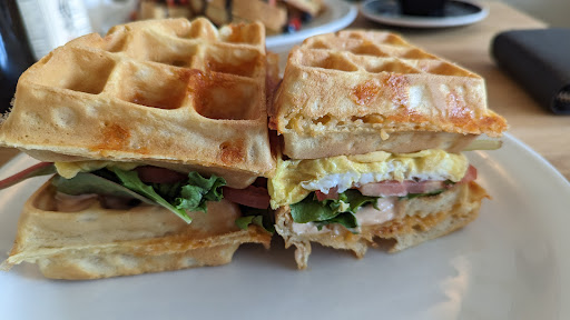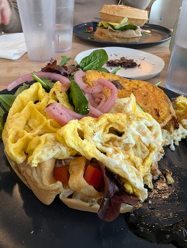 The sweetness of the waffle perfectly complimented the saltiness of the cheese and bacon while the eggs enhanced the rich flavor of the meal. They also served real maple syrup, which is a big...
