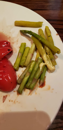 This is on the Kitchen who clearly do not know how to cook steak properly - and the expediting staff who should never have let those plates leave the kitchen with that dead asparagus on the plate. I mean asparagus is supposed to be GREEN - NOT YELLOWED with spots. I took a picture to show you - I cut the asparagus down to pieces, one piece is green - the rest is .. self explanatory.