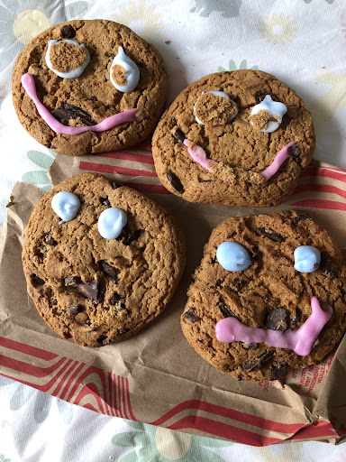 Editing my review with a photo. It's the little things that matter, like not smooshing the smile cookies...