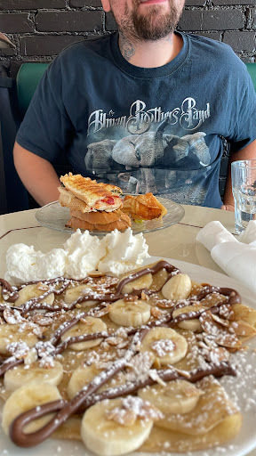 When my husband and I walked in we were greeted and seated and it was very welcoming. The owner is so nice and friendly and accommodating to a minor substitution on my husband’s crepe for a dietary need. These were the best crepes I’ve had outside of Paris. I’ve been to a few places in Toronto and Niagara Falls and this was the best. They were light and slightly crispy, filled with delicious ingredients (we both had the apple cheddar bacon crepe) and for me I had a perfectly poached egg on top. The grapefruit mimosas were also very good.