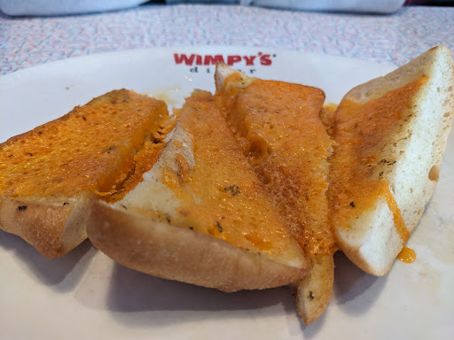 Read moreThere was a clear lack of quality control the day we went, Feb. 12, 2016 around 3:00. It starter with the kitchen staff putting out unmelted cheese on our non toasted bread. I can't call it garlic bread because there was only butter on it. Then our server putting it in front of us on the table. Looking like it did. I've added pictures where I can for reviews. We sat staring at the lump on food in front of us staff didn't notice or care I don't know which (this is a theme). We had to go to the person taking our order and let them know this was not the experience we had the last time we were at this location and the food was rather different, we tried to describe the toasted with herbs garlic butter and melted cheese but quickly before listening took the frigid away and made an equally not good version again. Due to appointments running along we are eating late in the day so we just ate it anyway normally I would've sent it back again. Though I can tell for fact it wouldn't have changed the quality of the food the people cooking it don't know how to make food they might know the idea of following directions to complete a recipe but not actually how to cook. All three of the meals we ordered were significantly lower quality than we've ever had at Wimpys. Although I think I've only had one decent meal there are we definitely won't be coming back to any Wimpys ever. It's an easy place to take people who have different tastes. Normally it's an acceptable diner food but this one is the last straw the staff didn't even take the failed garlic bread...
