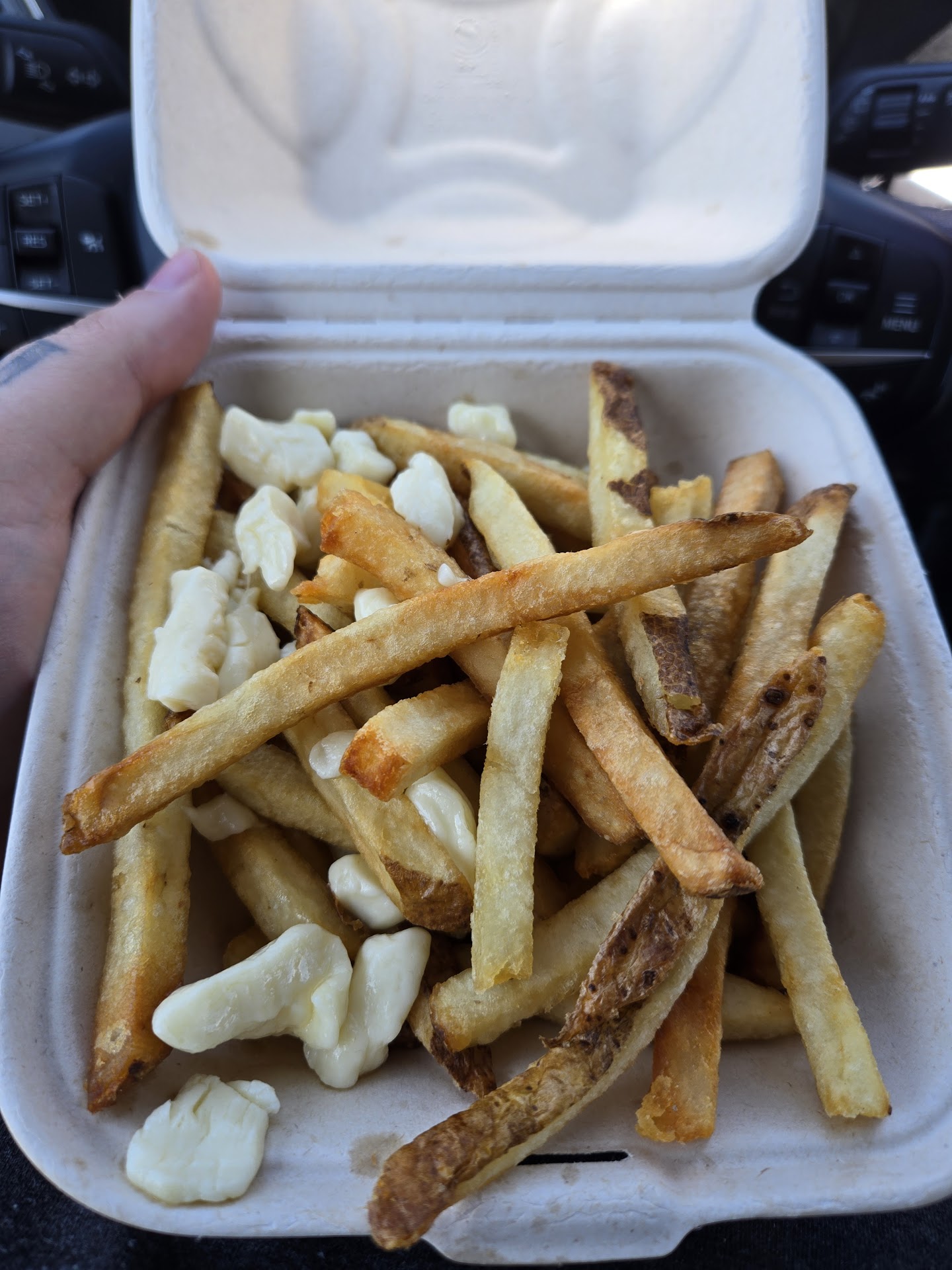 We got in and placed the orders fine enough, but it took a long time for a Vernon's poutine, a classic burger with rings, and fries chicken dinner to come out. Ok, it was a little busy, dining room was maybe half full? The patio wasn't busy. Take out could have been. Let that go.