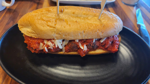 Coupon time at Match Eatery and Casino last night. Little disappointing on a night when reminiscing. Last time we were here was with Mum when she was still with us at the end of last year. Mum treated us two kids to dinner with our better halves. Sadly at that time she took most of hers to go as she had no appetite. Food was enjoyable and no complaints. I haven't written many bad reviews as I'm generally easy to please and can accept some lapses. Yesterday though I had the "Godfather" meatball sub and need to highlight the meal. First take time and review the picture below. Are you inspired for that at $18.95 plus tax? A separate Italiano menu. Wow, I thought. I was hog washed into thinking something spectacular might be forthcoming. Honestly I'm not hard to please but seriously it should be named the "Poorman" sub. No peppers, no onion and I might guess it contained pre-made frozen bagged meatballs and it tasted like someone cracked open a can of Hunts ninety nine cent pasta sauce. (No judgement to fans) Or maybe it was "Catelli"? All on a small uninspired bun. Also was that bagged grated cheese? Might recommend the inclusion of some nice melted provolone slices instead. Finally it was all unceremoniously ladled onto the bun to ooze and drip out everywhere. Why not cut out a cavity and recess the meatballs into it for ease of dining. I'm not shucking down a chili cheese dog at the ball game with a cold one in my hand in the concourse. I implore the kitchen manager to try the dish. Past the overpowering tomato sauce you cannot taste a mention of any of the inclusions you state it is cooked in or with. Maybe there wasn't even Aioli or any mayonnaise under there. I couldn't tell due to the taste. Who said you couldn't mess up fries? I think when my first sub rolled into view across the floor of the restaurant and they made me a new one, I didn't get fresh fries. Rather I think my original fries got put under the plate warmer to wilt away gracefully. Biggest pet peeve if all else has gone awry with a seating. .. Never serve luke warm water to a tea drinker. Fail.🥲 My wife's shrimp and alfredo pasta was good to the point she cleaned her plate. Either really good, she was starving, or trying to make a point I don't take her out to eat too much coz I'm cheap. 🤔 My gran would say frugal, but nah, I'm cheap. 🤣 I'm going to go with the dish was tasty and not overly cheesy like some versions. Our server Olivia was quick, prompt and courteous, albeit we were ahead of the evening dining or drinking crowd, so not much of a challenge. She readily apologized that my sub went for an adventure across the floor but it was probably a good thing that she missed checking in with us as to our contentment with the food and the opportunity for me to express my disappointment. The food wasn't worth the price. Management and kitchen fault not the wait staff. Especially comparing to previous visits and when it was a limited time menu item by all appearance. Please don't add it as a regular item...