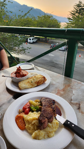 The new steak on the menu was full of chewy fat compared to the amazing one I ordered 2 weeks ago. The butter chicken was okay but way too tomatoey. They took the dish we really wanted to order off the menu, chicken parmesan. There were tons of spiders near our table on the patio, someone needs to clean this place. The service at first was good because we were the only people in the restaurant - but once other people arrived it went downhill fast. Waited over 25 minutes for the server to come back to our table so we could get change for a cash tip, but she never came back, so we took our cash tip and left. The view is still gorgeous, which was the one redeeming factor about our visit. Wont be coming back unless I get another giftcard given to me for free because its far from...