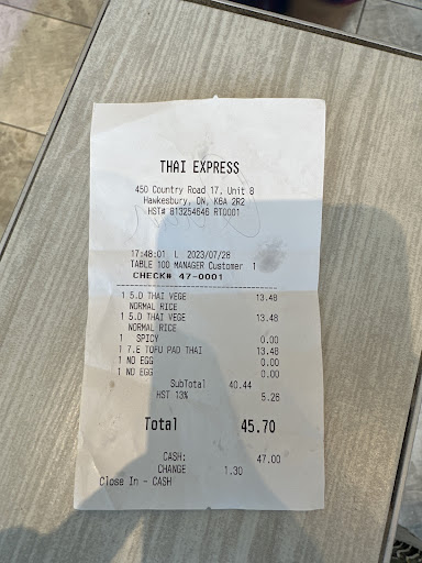 I had an absolutely amazing experience at this Thai Express! The food was fresh, flavorful, and perfectly spiced to my liking. Everything I tried was delicious—from the classic Pad Thai to the rich and creamy Green Curry. The portion sizes were generous, and the presentation was spot on.
