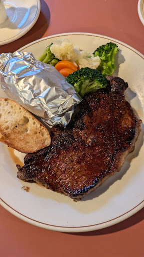 I ordered mine medium well, with a baked potato and the carrot ginger soup (because who needs salad when you can have soup that tastes like sunshine in a bowl?). The steak arrived with that beautiful crust that every carnivore dreams of. The baked potato? Still piping hot thanks to its foil cocoonābecause, folks, nothing says love like a potato that sticks around for the long haul. The veggies were perfectly cooked, not a mushy mess, and the baguette, oh the baguette! Lightly kissed by the grillājust enough to give you that smoky flavor without crossing over to charcoal territory. It was a delicious trip down memory lane, reminding me of toasting bread on a wood stove as a kid.