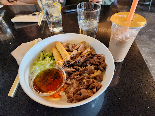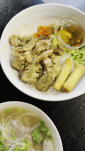 The Lemongrass Chicken Vermicelli was a Vietnamese rice noodle bowl without soup. The chicken was well-seasoned with lemongrass and was not overly salty. The bowl also included cucumbers, carrots, and lettuce, which could be mixed with the sweet dipping sauce they provided. It also came with spring rolls, offering a choice of veggie or pork flavors.