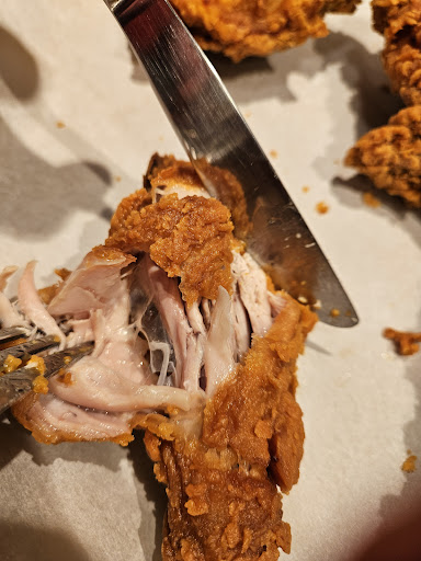 Read moreAbsolutely a horrible, horrible, horrible experience. Ordered through the app 35 mins in advance and came in to pick up right on time. Food wasn't ready, no one would acknowledge us at the pickup window and it took us literally putting our heads in the window to even have someone talk to us. Didn't stop there - our order wasn't even acknowledged. We ordered 10 tenders/2 sides/5 biscuit meal - we literally watched them give the tenders away to the takeout window twice and were told 5 more minutes four times. Our sides sat on the side the whole time. It was for take out and they still gave it to us on a tray. The entire time we watched as staff didn't communicate and tripped over each other in the back. The manager did not lead or attempt to address the kitchen of chaos. So a meal we ordered 35 mins in advance was prepared 30 mins after we arrived for pickup. We were not once given an apology. Insult to injury - the side gravy we ordered was half full and everything but the...