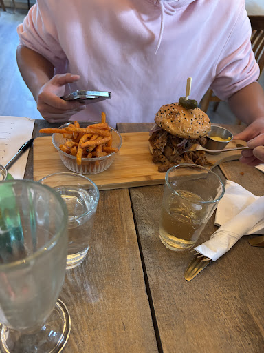 The special was brisket burnt end tacos and I believe she said a peach corn salsa. So we decided to split those along with the Gettin Piggy With it Nachos. These were house smoked pork butt, bell peppers, red onion, tomato, pickled jalapeños. mozzarella, and cheddar with peach and corn salsa, and sour cream. The flavor of this food was on point. It was so good. I'd almost rate it higher if I could. Highly recommend giving them a try. Service was also good, we had 2 waitresses as one was training...